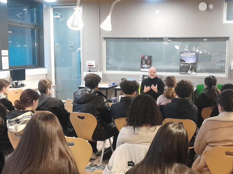 De quoi intéresser les élèves de terminale spécialité HGGSP (Histoire, Géographie, Géopolitique, Sciences Politiques) de Mme Couzin (groupe T HGGSP 1). Pendant 2h au CDI, ils et elles ont pu interroger Thomas Cantaloube sur de nombreux sujets comme sa formation de journaliste, les rouages de ce métier ou les spécificités de l'écriture journalistique et de fiction.