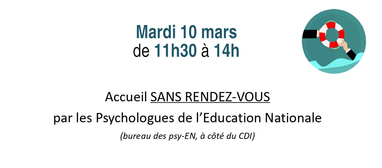 Une question de "dernière minute" sur votre dossier Parcoursup ? Les Psychologues de l'Education Nationale vous accueillent sans rendez-vous le mardi 10 mars 2026.